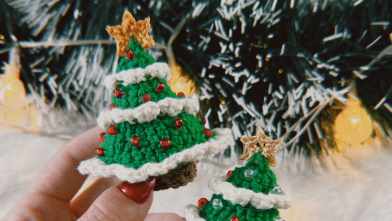 As guirlandas feitas com mini amigurumis se tornaram tendência nas últimas temporadas. A base pode ser de crochê ou arame, enquanto os detalhes incluem mini Papai Noel, bonecos de neve, estrelinhas, sinos e outros elementos natalinos. Por ser uma peça mais elaborada, costuma ter valor de venda mais alto e é perfeita para quem deseja oferecer algo sofisticado e artesanal.
